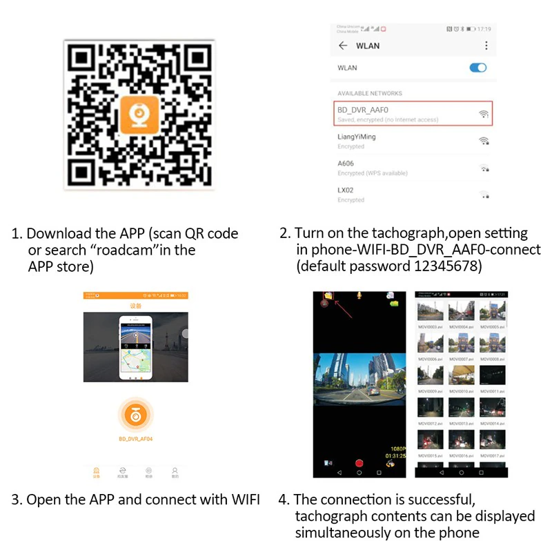 The dash camera for cars is built-in 2.4G WiFi with an easy connection to the App(for Android or iOS smartphones), and you can download videos, change settings, and edit videos via the APP. The videos recorded can be shared easily on YouTube, Twitter, Facebook, or the social media platform with the tap of a finger, allowing you to share any journey with your friends and family.