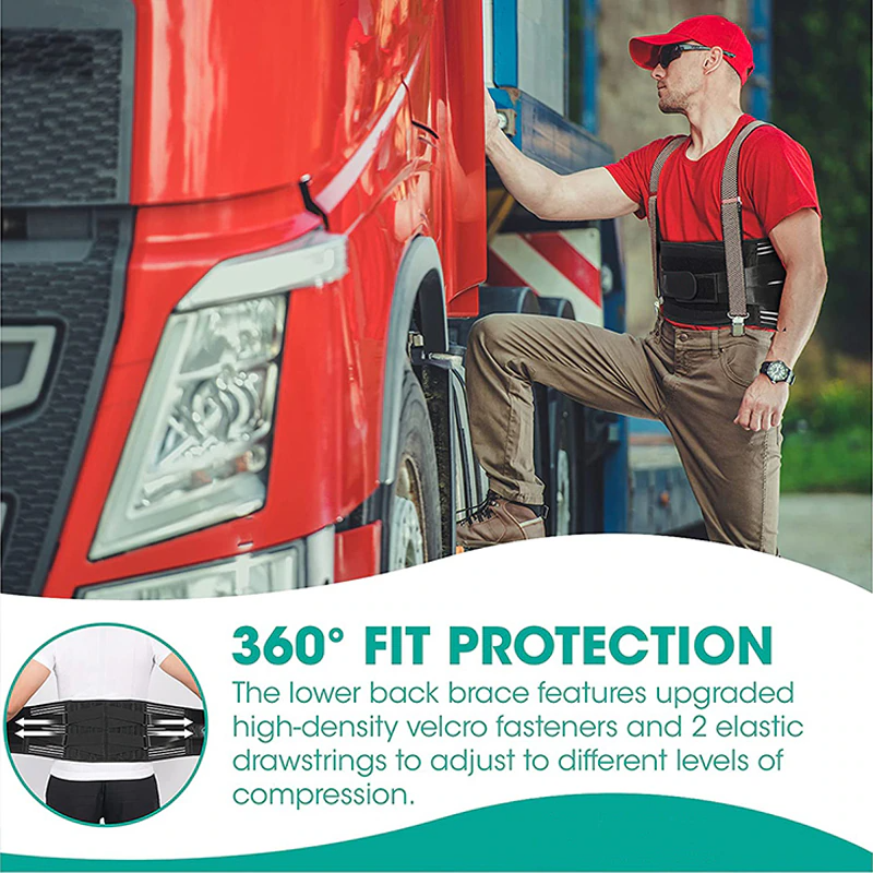 Our Back brace contains 4 Memory-aluminum stays that are quadruple harder than the commonly used PP strips, and 2 steel springs placed along the waist side, offer 360° stronger vertical support to lower back, prevent excessive rolling of your muscles and decrease the pressure on your discs.