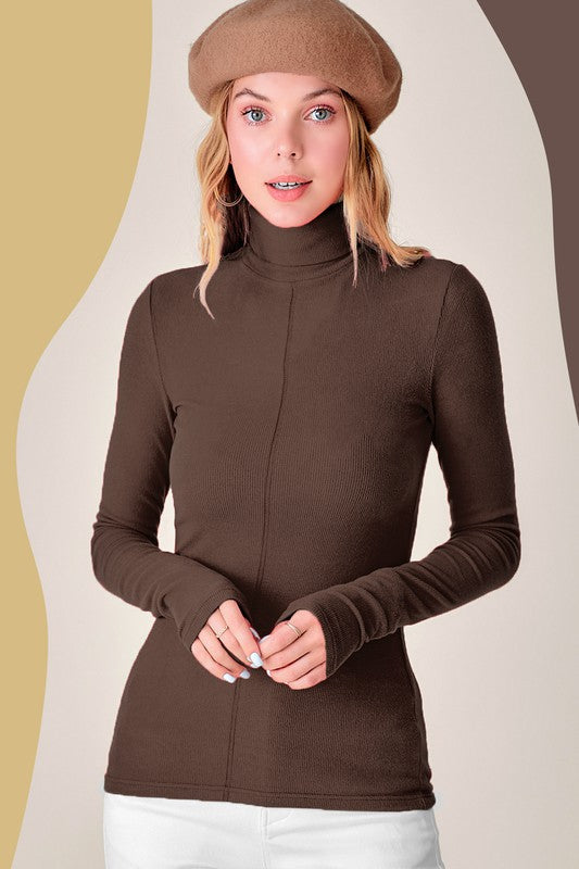 Essential turtleneck featured in a slim silhouette with a soft and stretchy fit. Perfect layering piece underneath any shirt or jackets. Basic piece but looks special with stitch detail in the front and back.