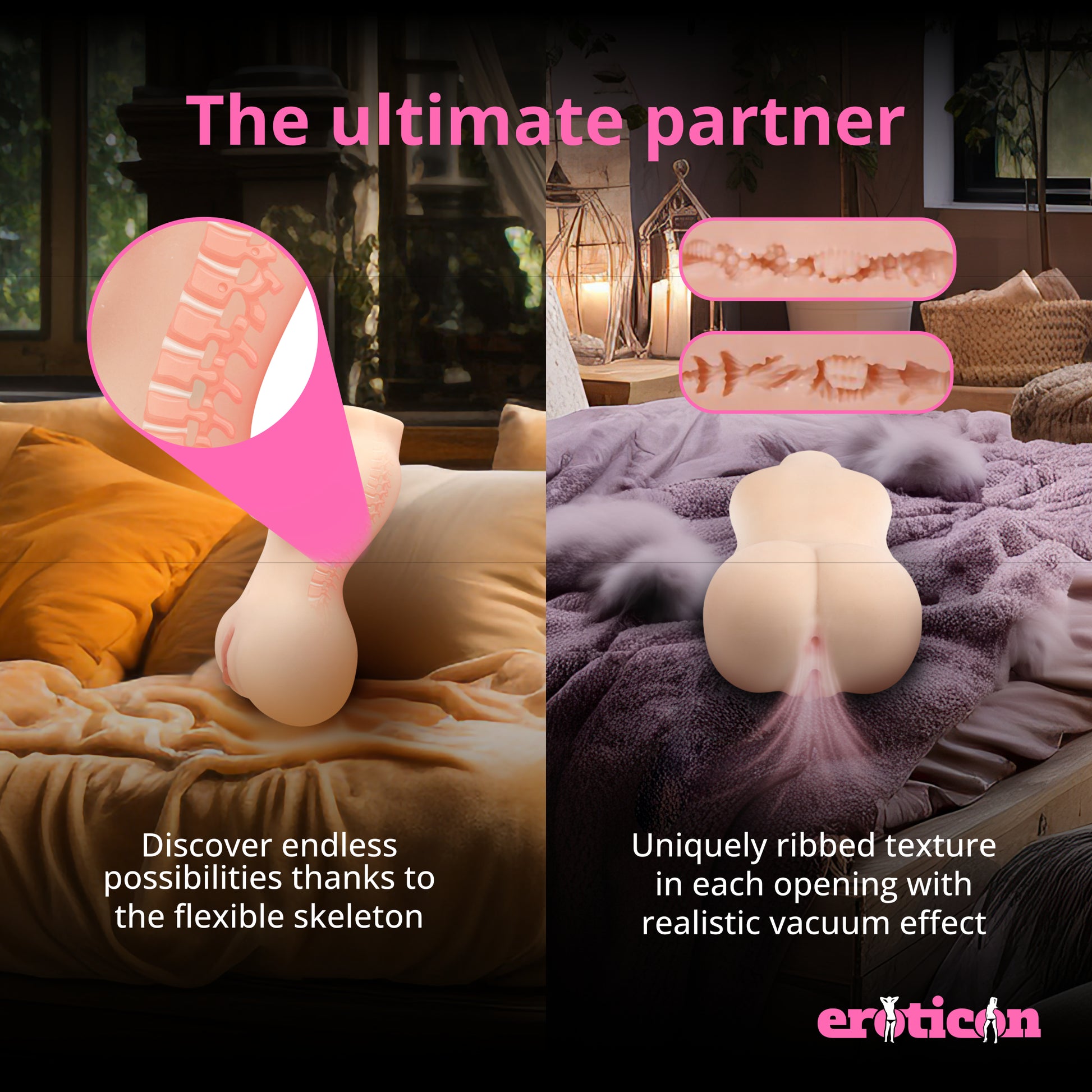 Looking for the ultimate sex doll experience for men or women? With the Eroticon sex doll, you are assured a realistic look and feel, with a slight vacuum effect for even more pleasure. This sex doll is suitable for both vaginal and anal use, with 2 unique openings for all desires. Easy to clean, so you can quickly enjoy this high-quality sex body again. Make all your fantasies come true with this masturbator for men and women! The benefits at a glance Realistic look and feel Light vacuum effect for even more realism Suitable for vaginal and anal use 2 unique openings Easy to clean Discreetly shipped Boost your solo play or relationship with this sex doll! Realistic look & feel The sex doll from Eroticon has a very realistic look and feel lifelike. Light vacuum effect for even more realism Thanks to the light vacuum effect, the experience becomes even more realistic and intense. Suitable for vaginal and anal use With 2 unique openings, this sex doll is perfect for both vaginal and anal use. Frequently Asked Questions 1. Is this sex doll realistic and does it feel real? Yes, this sex doll from the Eroticon brand has a realistic look and feel. The slight vacuum effect makes her feel even more realistic. 2. Are there different openings you can use the doll for? Yes, this sex doll is suitable for vaginal and anal use. She has 2 unique openings for your pleasure. 3. Is this sex doll easy to clean after use? Yes, this sex doll is easy to clean. You can easily rinse her off with water and use a mild soap if necessary. To keep the doll even better clean, you can also use Eroticon toy cleaner. 4. Who is this sex doll intended for? This sex doll is mainly for men or couples looking for a realistic and exciting experience. Although the doll is also suitable for women who like to experiment. 5. Can I order and receive this sex doll discreetly? Yes, you can order this sex doll discreetly on